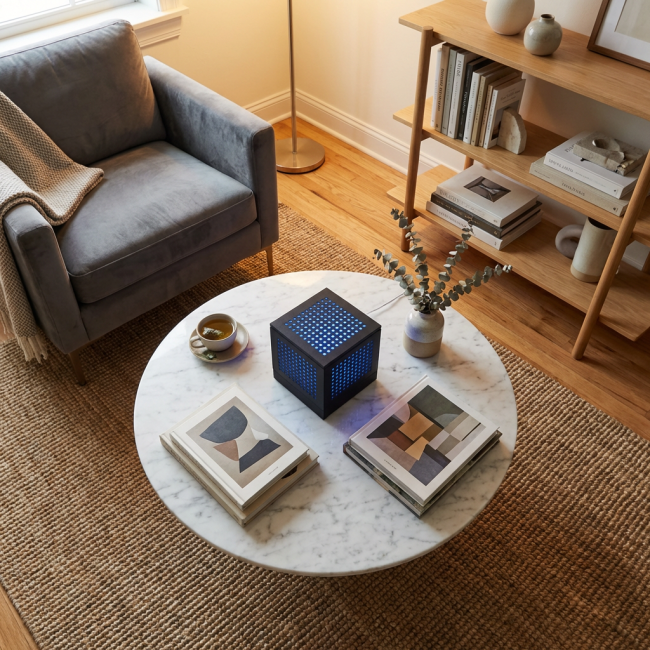 Posée sur une table basse ou une étagère, elle projette des jeux d'ombres apaisants et transforme votre pièce en un cocon accueillant.