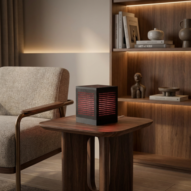 Apportez une touche de chaleur instantanée à votre intérieur. Cette lampe cubique n'est pas qu'un simple luminaire, c'est un véritable créateur d'ambiance. Avec son design épuré et ses ajours circulaires ludiques, elle diffuse une lumière douce et dorée qui réchauffe l'atmosphère dès qu'on l'allume.